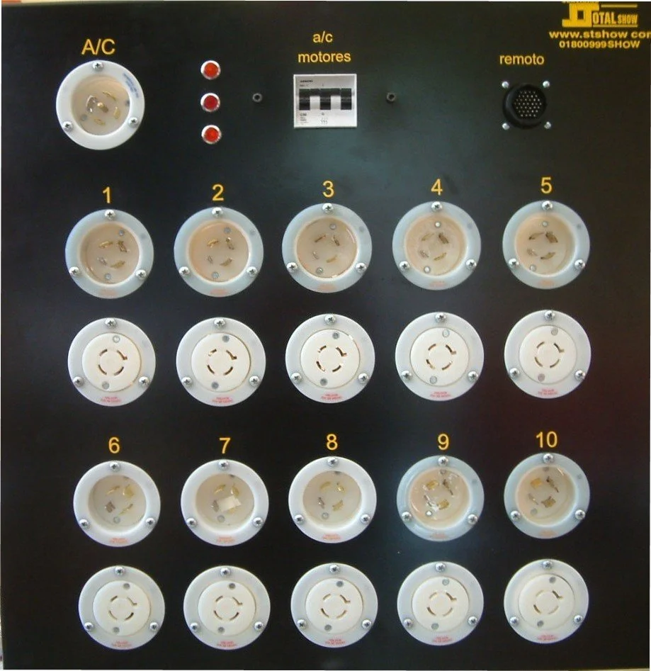 Caja de control de motores diseñada por Total Show con capacidad para controlar hasta 10 polipastos.