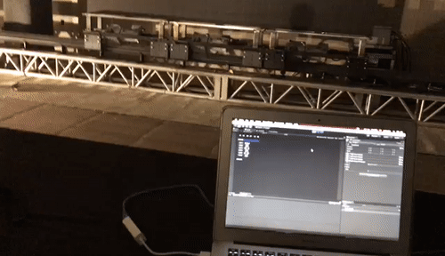 Rieles y mecanismos diseñados y manufacturados por Total Show con movimiento controlado por computadora.